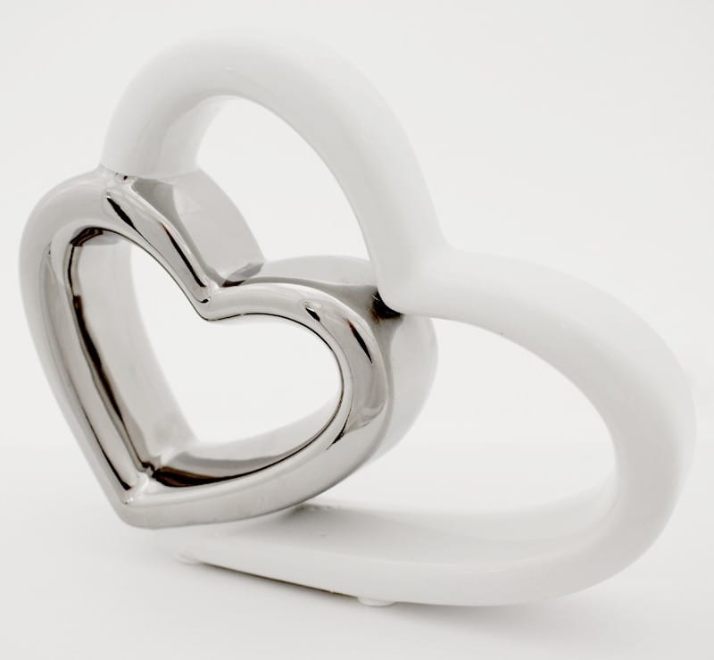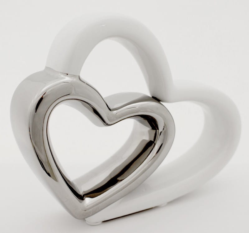 Piękna figurka z wizerunkiem zakochanych serc wykonana z ceramiki w kolorze biało srebrnym. Sprawdzi się jako ozdoba mieszkania w stylu klasycznym, jak i nowoczesnym. Jej niepowtarzalny design sprawi że nikt nie przejdzie obok niej obojętnie.